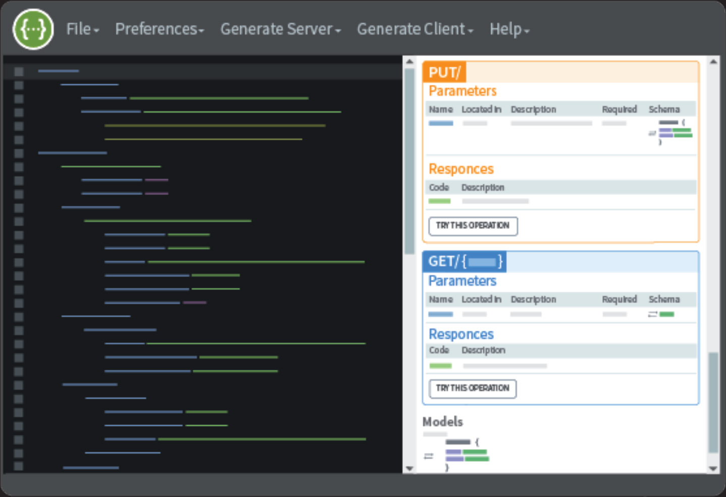 REST API is described using SWAGGER V3 (swagger.io) and allows testing and code generation without any real data operation.